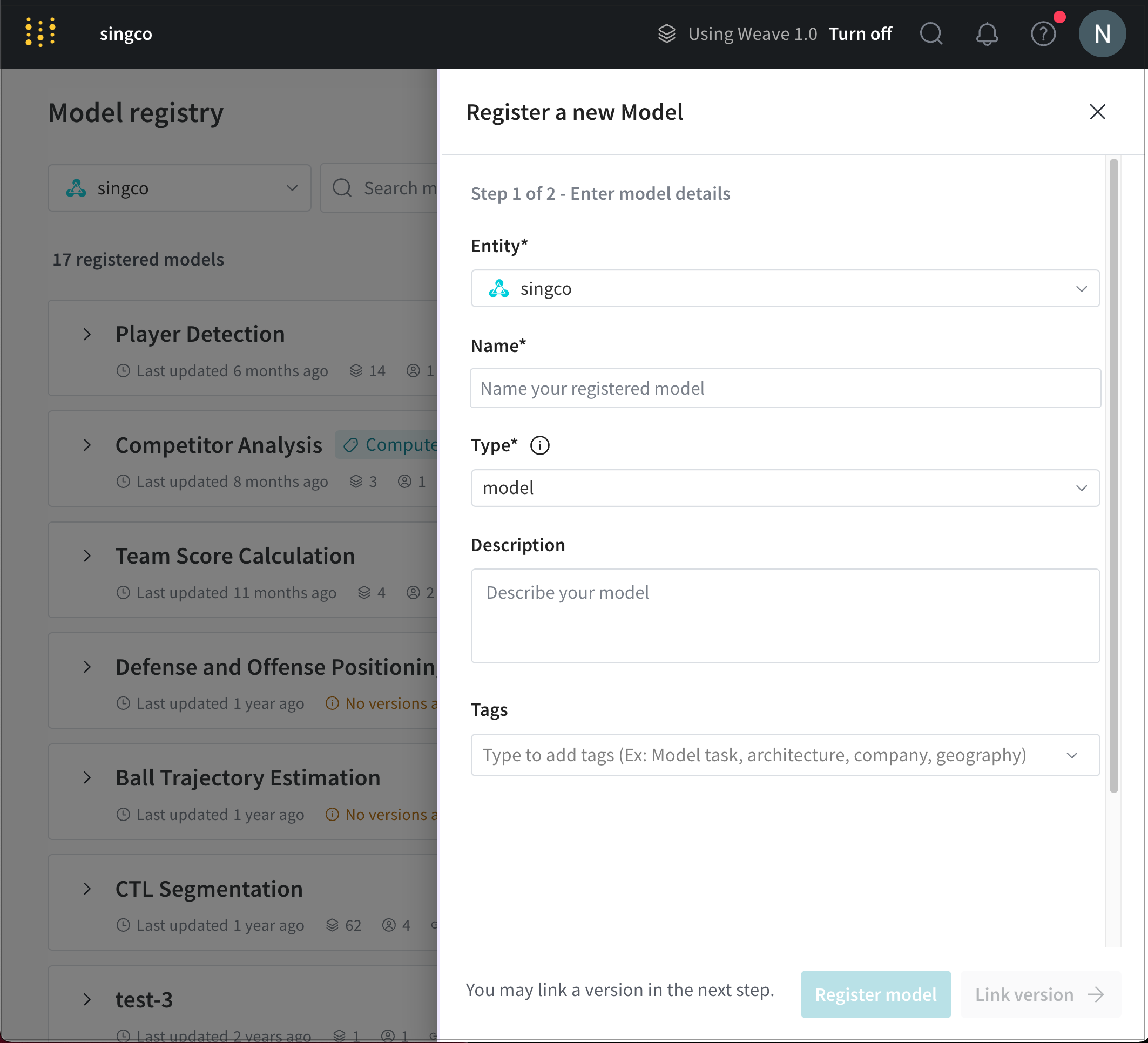 - Register model をクリックします。